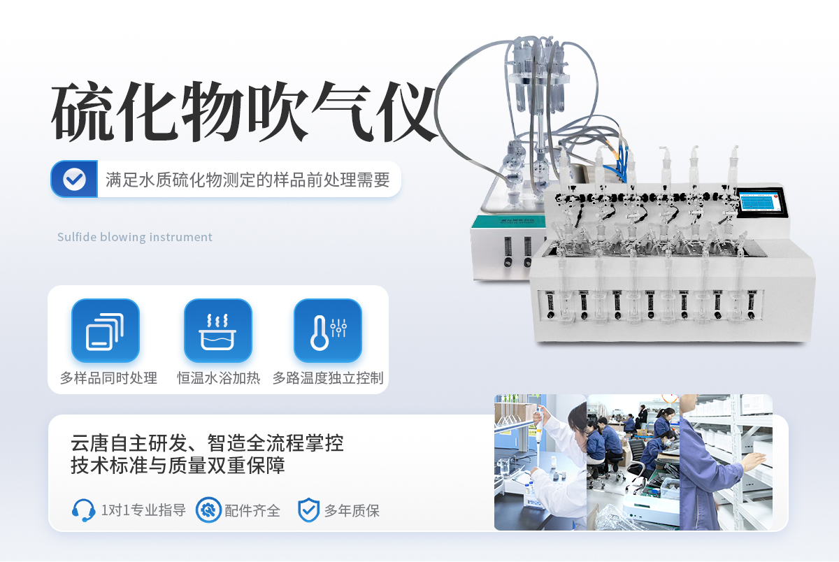 水質(zhì)硫化物酸化吹氣儀根據(jù)水質(zhì)硫化物的測定-亞甲基藍分光光度法(碘量法)標準開發(fā)生產(chǎn)的。滿足水質(zhì)硫化物測定的樣品前處理需要。