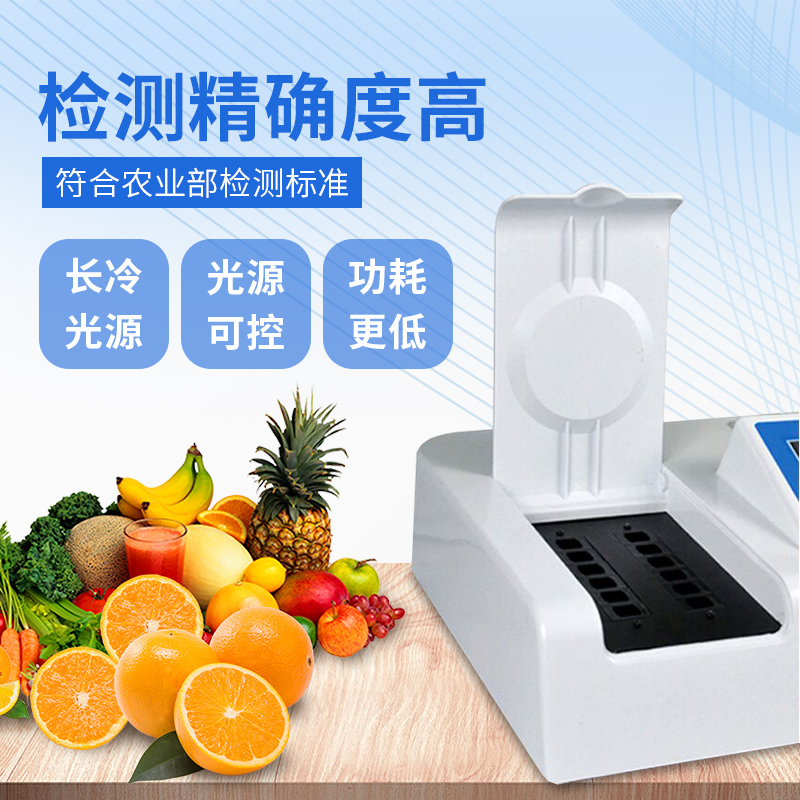 檢測(cè)標(biāo)準(zhǔn):依據(jù)國(guó)家標(biāo)準(zhǔn)方法(GB/T5009.199-2003)以及世界衛(wèi)生組織WHO、世界糧農(nóng)組織FAO殘留農(nóng)藥檢測(cè)標(biāo)準(zhǔn)、世界環(huán)境保護(hù)局EPA參照攝入量等要求來(lái)設(shè)計(jì)。采用酶抑制率比色法對(duì)水果、蔬菜等農(nóng)林產(chǎn)品中有機(jī)磷和氨基甲酸酯類農(nóng)藥含量進(jìn)行快速準(zhǔn)確的檢測(cè),乙酰膽堿酯酶和丁酰膽堿酯酶試劑均可以使用,符合國(guó)家標(biāo)準(zhǔn)和農(nóng)業(yè)部標(biāo)準(zhǔn)的要求。