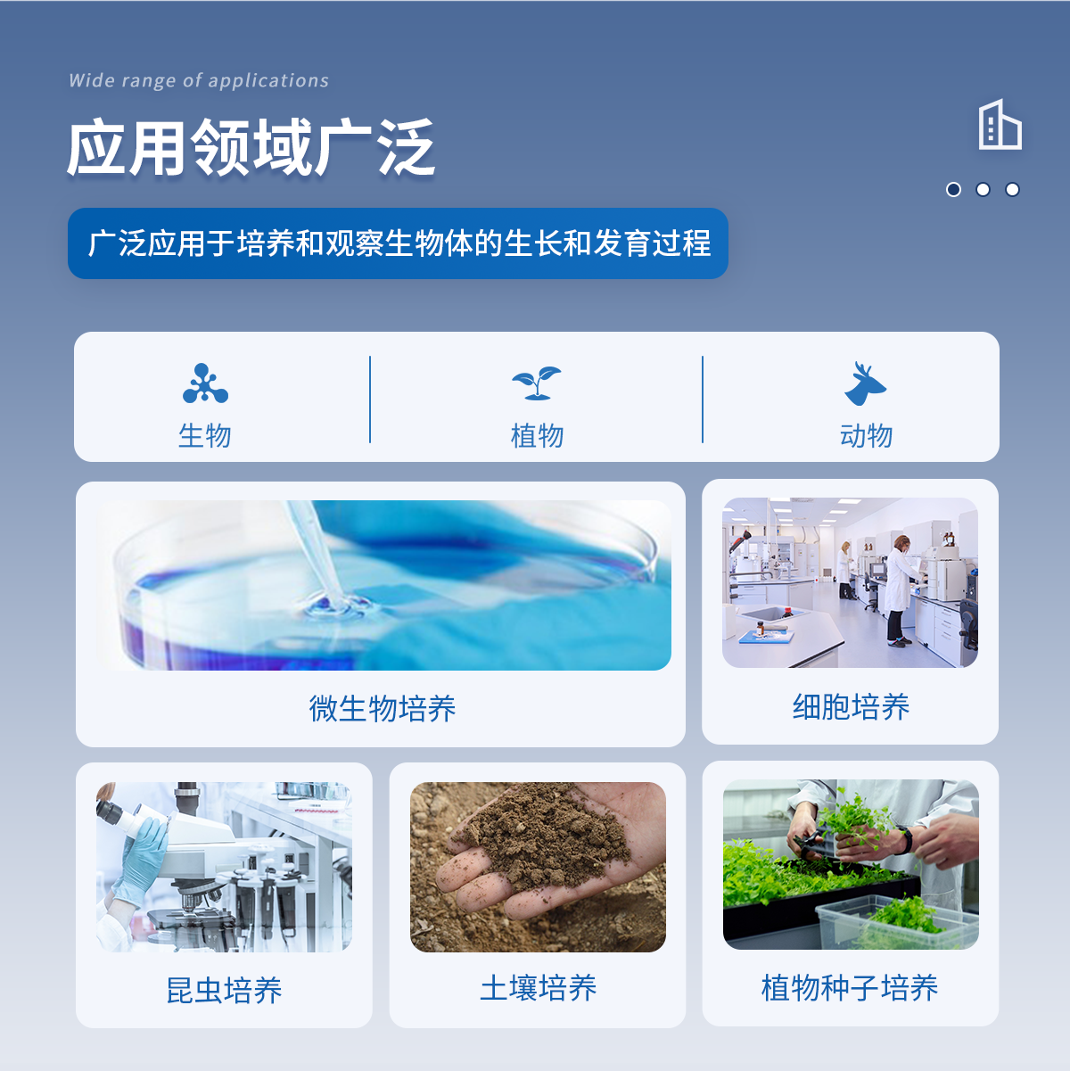 恒溫恒濕培養(yǎng)箱是一種廣泛應(yīng)用于生物學、醫(yī)學、農(nóng)業(yè)科學等領(lǐng)域的實驗設(shè)備,可以模擬和調(diào)節(jié)不同的溫度和濕度條件,以培養(yǎng)和觀察微生物、植物、動物等生物體的生長和發(fā)育過程。在微生物培養(yǎng)、植物種子培養(yǎng)、細胞培養(yǎng)、昆蟲培養(yǎng)、土壤培養(yǎng)等領(lǐng)域都有著重要的應(yīng)用。隨著科學技術(shù)的不斷發(fā)展,恒溫恒濕培養(yǎng)箱的應(yīng)用領(lǐng)域也將不斷拓展和深化,為生命科學、生物技術(shù)、農(nóng)業(yè)科學等領(lǐng)域的發(fā)展提供更加精準、**的實驗支持。