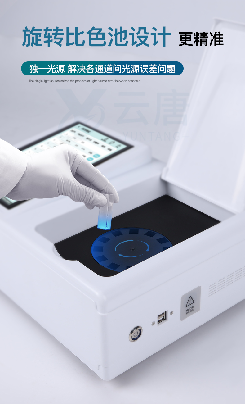 4、檢測(cè)通道:≥12通道;采用精密旋轉(zhuǎn)比色池設(shè)計(jì),使用同芯片同光源校準(zhǔn)精度,解決不同光源之間的誤差值,更加準(zhǔn)確**。(1-12通道間誤差0.1%,***:**202022821055.2)