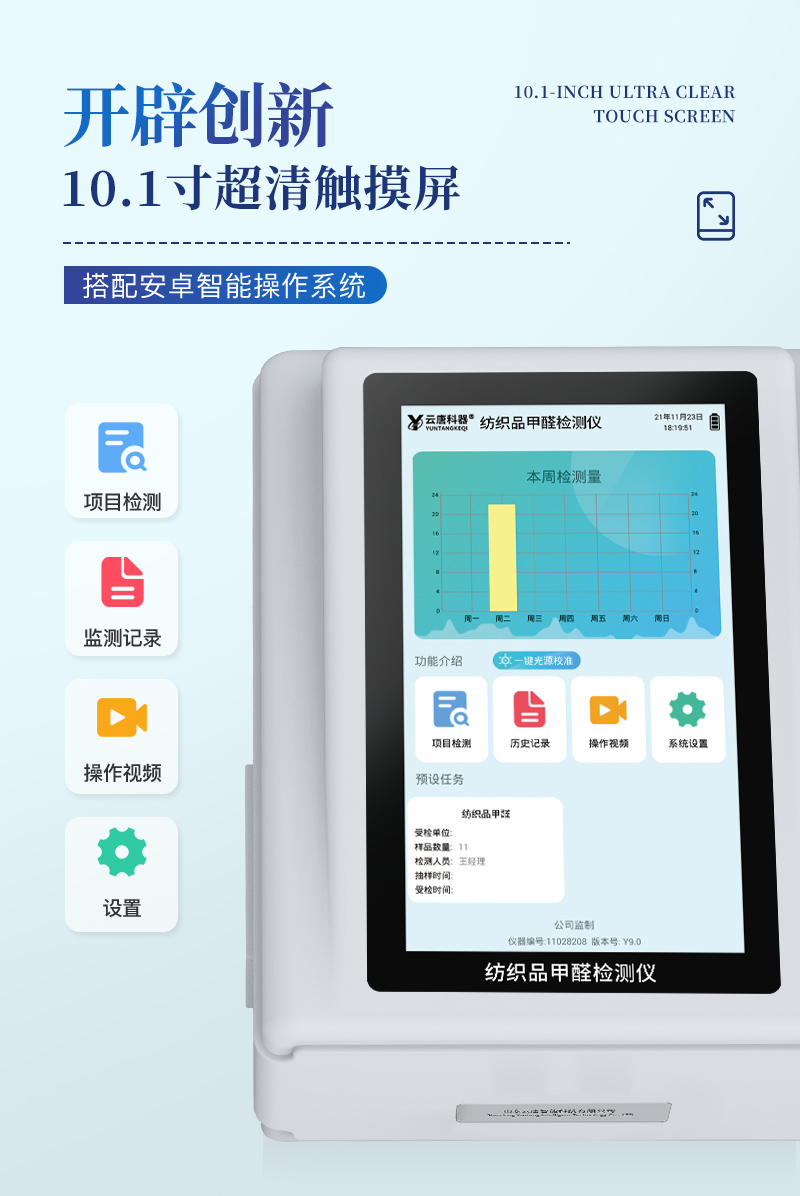 該紡織品甲醛檢測系統(tǒng)與質(zhì)檢、商檢機構(gòu)采用同樣執(zhí)行標準、檢測方法,專業(yè)為廣大紡織品、服裝等生產(chǎn)企業(yè)、質(zhì)檢商檢單位提供“一站式服務”,同時為各類紡織品甲醛實驗室提供專業(yè)的解決方案。