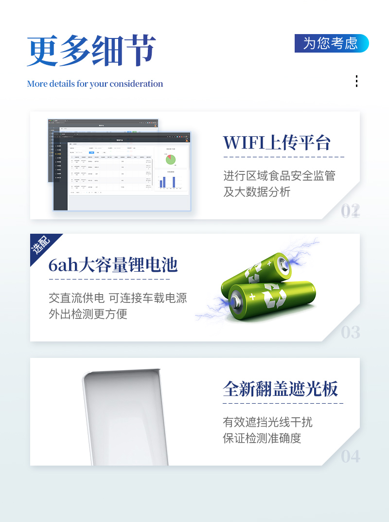 ?、?該儀器模塊化高度集成,同步設有數(shù)字化管理模塊、無線通訊模塊,可將檢測結(jié)果進行分析,直接上傳至數(shù)據(jù)平臺,實現(xiàn)數(shù)據(jù)共享,方便后期進行數(shù)據(jù)分析與統(tǒng)計。