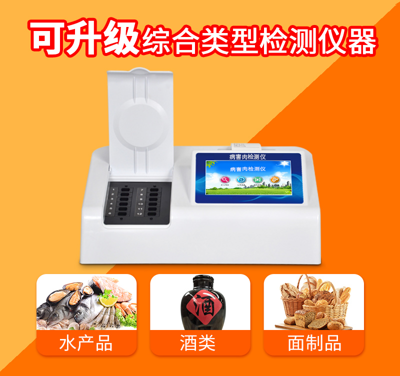 該多功能食品安全檢測儀為集成一體化食品安全快速檢測分析設備,廣泛應用于市場監(jiān)管局、食品肉產品深加工企業(yè)、衛(wèi)生部門、學校食堂、農業(yè)部門、養(yǎng)殖場、屠宰場、檢驗檢疫部門等單位使用。