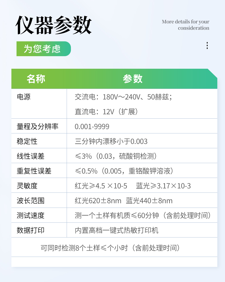 測一個土樣有機(jī)質(zhì)≤60分鐘,同時(shí)檢測三個土樣有機(jī)質(zhì)≤80分鐘。