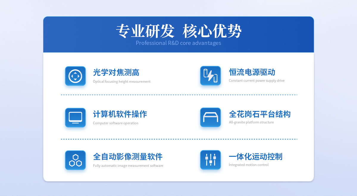 | 1. 本機(jī)專為**全自動(dòng)量測(cè)市場(chǎng)量身定制,其具有的CNC編程、精準(zhǔn)定位、重復(fù)測(cè)量、SPC報(bào)表統(tǒng)計(jì)、自動(dòng)測(cè)量結(jié)果輸出等功能,能快速**地解決不同產(chǎn)品的批量測(cè)量需要,適用于以二維及簡(jiǎn)易三維測(cè)量為目的的一切應(yīng)用領(lǐng)域, 廣泛應(yīng)用在鍋爐、壓力容器、航天、航空、電力、石油、化工、海洋石油、管道、軍工、船舶制造、汽車、機(jī)械制造、冶金、金屬加工業(yè)、鋼結(jié)構(gòu)、鐵路交通、核能電力、高校等行業(yè); | 2. 本機(jī)X、Y、Z三軸均為伺服驅(qū)動(dòng),由鼠標(biāo)、鍵盤或選配搖桿操縱,通過(guò)本司專用的全自動(dòng)影像測(cè)量軟件,具有自動(dòng)邊緣提取、自動(dòng)理匹、自動(dòng)對(duì)焦、測(cè)量合成、影像合成等人工智能技術(shù),同時(shí),基于機(jī)器視覺(jué)與微米**控制下的自動(dòng)對(duì)焦功能,可以滿足清晰攝影下輔助測(cè)高需要(亦可加入精密測(cè)頭完成接觸式坐標(biāo)測(cè)高)。可在使用夾具或工件隨意放置的情況下,進(jìn)行批量測(cè)量、SPC結(jié)果分類、自動(dòng)輸出測(cè)量結(jié)果等操作。 |