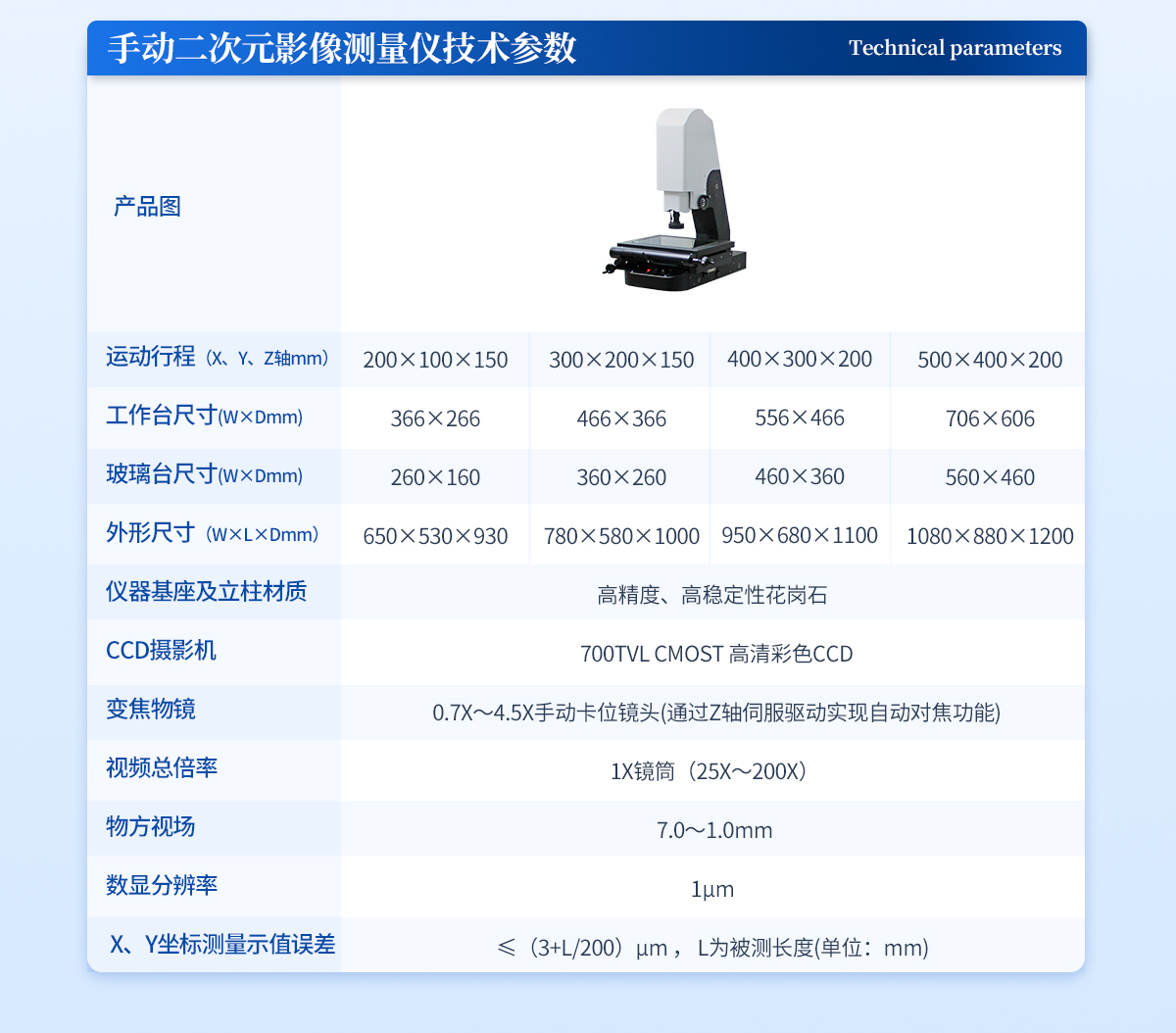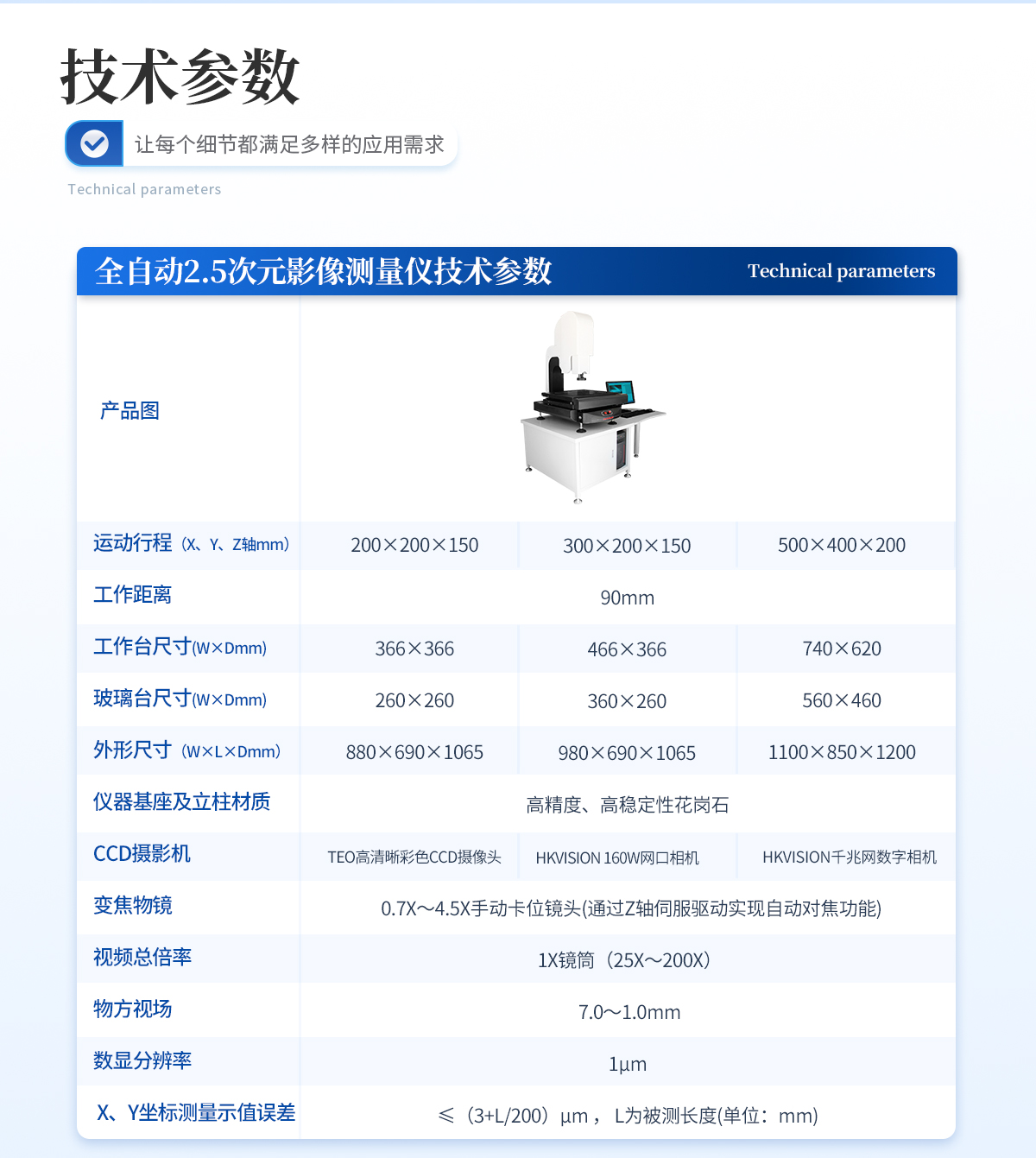 | 1. 運(yùn)動(dòng)行程(X、Y、Z軸mm):300×200×150 | 2. 工作距離:90mm | 3. 工作臺(tái)呎寸(W×Dmm):466×366 | 4. 玻璃臺(tái)呎寸(W×Dmm):360×260 | 5. 外形尺寸(W×L×Dmm):980×690×1065 | 6. 儀器基座及立柱材質(zhì):高精度、高穩(wěn)定性花崗石 | 7. CCD攝影機(jī):HKVISION 160W網(wǎng)口相機(jī) | 8. 變焦物鏡: 0.7X~4.5X手動(dòng)卡位鏡頭(通過(guò)Z軸伺服驅(qū)動(dòng)實(shí)現(xiàn)自動(dòng)對(duì)焦功能) | 9. 視頻總倍率: 1X鏡筒(25X~200X) | 10. 物方視場(chǎng): 7.0~1.0mm | 11. 數(shù)顯分辨率:1μm | 12. X、Y坐標(biāo)測(cè)量示值誤差≤(3+L/200)μm , L為被測(cè)長(zhǎng)度(單位:mm) | 13. 操作方式:XYZ三軸全自動(dòng)伺服電機(jī)控制 +集成一體化運(yùn)動(dòng)控制設(shè)計(jì) (只需對(duì)接220V電源界面、USB界面、AV視頻界面即可使用) | 14. 測(cè)量軟件:INS全自動(dòng)影像儀專用測(cè)量軟件 | 15. 工作環(huán)境:溫度20±5 ℃,濕度35%-75%(盡量滿足環(huán)境條件),如果溫濕度條件不能達(dá)到以上標(biāo)準(zhǔn),至少要將儀器放置在少灰塵,少油氣,遠(yuǎn)離振動(dòng)源的室內(nèi)。 |